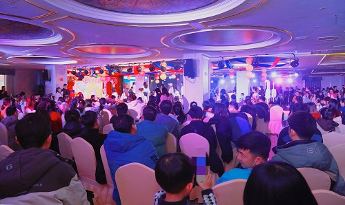 活动现场布景精致、气氛热闹,除了互动抽奖、忆童年游戏闯关及精彩的文艺表演之外,还有二十余名Cosplay演员身着汉服、旗袍、新国潮等主题服装穿梭在现场欢乐巡礼。场上场下气氛欢快,高潮迭起,青年员工们尽情释放热情,充分展示青春和朝气,场面异常火爆。
