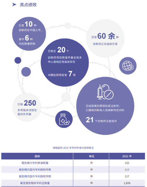 作为一家从事创新和高品质药品研制及推广的民族制药企业,恒瑞医药2021年继续秉持“科技为本,为人类创造健康生活”的使命,紧紧围绕医药创新,持续创造社会价值。