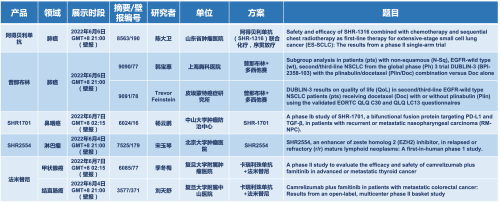 2022 ASCO恒瑞医药共有两项研究入选口头报告环节,另有一项研究入选壁报讨论环节。