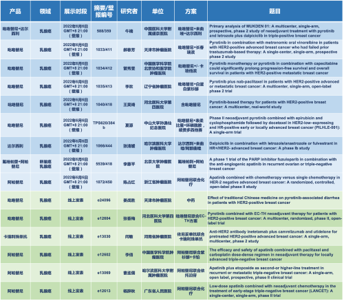 作为中国医药创新的代表性企业,恒瑞医药多年来致力于创新药物研发,自2011年以来恒瑞医药已连续12年参加并有研究入选ASCO年会。本次2022 ASCO年会,恒瑞医药共有63项研究入选,包括2项口头报告、1项壁报讨论、34项壁报和27项线上发表[1],涉及的抗肿瘤药包括5款已上市创新产品:注射用卡瑞利珠单抗(艾瑞卡®)、甲磺酸阿帕替尼片(艾坦®)、马来酸吡咯替尼片(艾瑞妮®)、羟乙磺酸达尔西利片(艾瑞康®)、氟唑帕利胶囊(艾瑞颐®),以及6款未上市创新产品:雄激素受体拮抗剂SHR3680、人源化抗PD-L1抗体阿得贝利单抗(SHR-1316)、微管蛋白抑制剂普那布林、多靶点受体酪氨酸激酶抑制剂法米替尼、抗PD-L1/TGF-βRII双抗SHR-1701、组蛋白甲基转移酶EZH2抑制剂SHR2554等,研究成果涵盖泌尿肿瘤、黑色素瘤、头颈肿瘤、消化道肿瘤、乳腺癌、肺癌、妇科肿瘤和血液肿瘤等8个肿瘤治疗领域。
