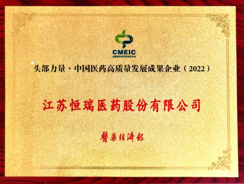 恒瑞医药及创新药艾瑞恩®荣膺“中国医药高质量发展成果企业/品牌”