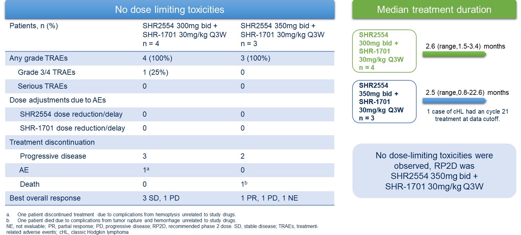 这是第一项研究抗PD-L1/TGF-βRII药物联合EZH2抑制剂对复发/难治性淋巴瘤和实体瘤患者的安全性和有效性的前瞻性研究。该研究初步结果显示,SHR-1701联合SHR2554在既往接受过免疫治疗的cHL患者中显示出可接受的安全性特征以及令人鼓舞的抗肿瘤活性。该结果为进一步的探索奠定了基础。
