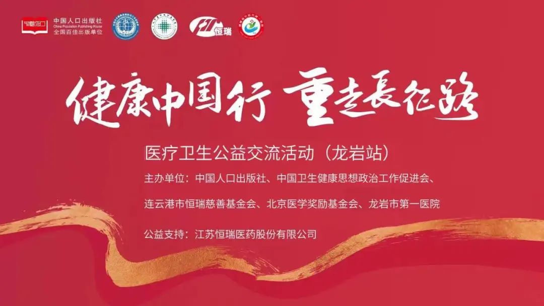 2023年6月10日,在国家卫生健康委基层司指导下,由中国人口出版社、中国卫生健康思想政治工作促进会、连云港市恒瑞慈善基金会、北京医学奖励基金会联合主办的“健康中国行·重走长征路”医疗卫生公益交流活动龙岩站在福建省龙岩市第一医院圆满举行。