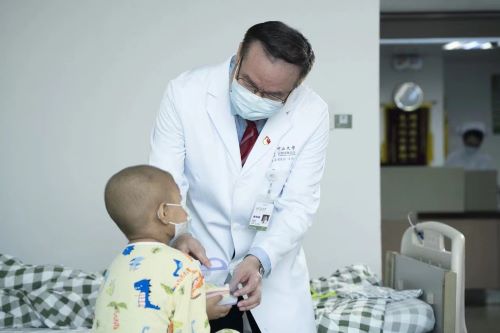 而近年来,麦海强也接触到了越来越多的儿童鼻咽癌病例,与成年人的分布不同,他们更多来自北方。“儿童鼻咽癌的情况差别很大,儿童的发病年龄聚集在14-16岁,且因为北方鼻咽癌病例少见,存在误诊的情况,很多小患者确诊时已经非常晚期了。”面对危在旦夕的孩子,麦海强在儿童鼻咽癌治疗方案上下了很大的功夫。相比成年人检查时使用的前鼻镜和鼻咽镜,他用不适感较轻的耳内镜为小患者做检查。治疗方面,他将孩子的成长发育及后续的生活质量作为主要考量,调整放化疗的使用剂量。“患者的治疗反应是参考标准,有的孩子对化疗敏感,需要根据他们不同的特点,动态地调整化疗方案。”