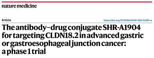 恒瑞医药CLDN18.2 ADC创新药SHR-A1904治疗胃癌临床研究结果荣登Nature Medicine