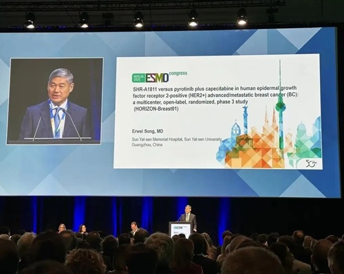 2025年欧洲肿瘤内科学会(ESMO)大会于当地时间10月17日至21日在德国柏林隆重召开。本次大会,恒瑞医药ADC创新药瑞康曲妥珠单抗(SHR-A1811)对比吡咯替尼联合卡培他滨治疗HER2阳性晚期/转移性乳腺癌(Ⅲ期HORIZON-Breast01研究)被接收为最新突破性摘要(LBA)口头报告。