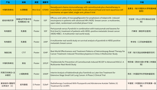 在头颈肿瘤、乳腺癌、肺癌、前列腺癌等多个疾病领域,卡瑞利珠单抗、阿得贝利单抗、吡咯替尼、氟唑帕利、法米替尼、醋酸阿比特龙片(II)等抗肿瘤新药相关研究一共入选了1项简短口头报告、4项壁报展示和1项电子壁报,彰显了恒瑞医药强劲的研发实力。此外,恒瑞医药自主研发的血小板生成素受体激动剂(TPO-RA)海曲泊帕在肿瘤治疗所致血小板减少领域、新一代长效G-CSF产品硫培非格司亭在肿瘤治疗所致中性粒细胞减少症领域各入选1项壁报展示。